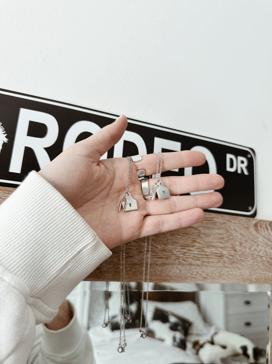 CUSTOM COWBOY BOOT COW TAG INITIAL NECKLACE