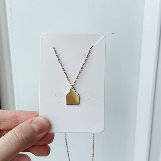 CUSTOM COWBOY BOOT COW TAG INITIAL NECKLACE (GOLD)